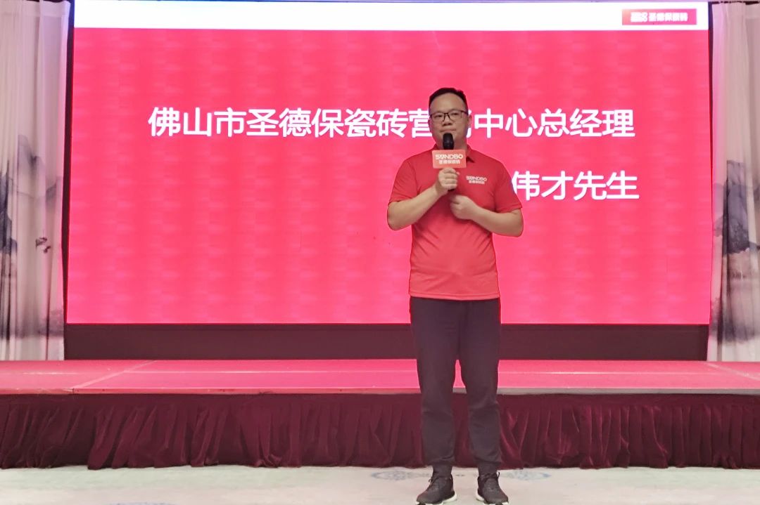 會上首先,圣德保瓷磚總經理嚴偉才發表致辭。嚴偉才表示:從1998年成立至今,圣德保瓷磚始終把握每一個關節。從布局到出擊強力強化戰略,持續踐行產品梯隊培育理念,并用服務引流獲得了品牌的持續向上。嚴偉才還寄語在場所有的經銷商:學習永遠是克敵制勝的最強法寶,要不斷提升專業度和市場競爭意識,努力在知行合一、學以致用上下功夫,把學習成效轉化,破解銷售難題,助力門店走得更穩、更遠。
